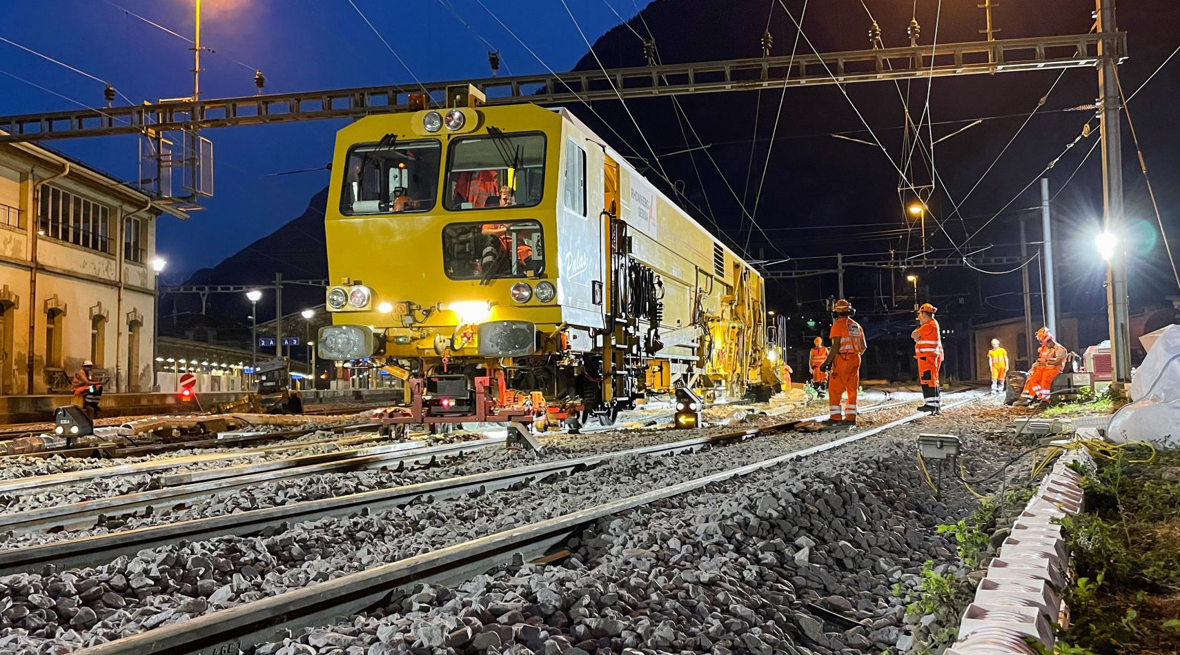 C’est déjà notre 5ème chantier réalisé dans le cadre du projet BM3 (Bauen mit Dritten) en 2023 pour le compte de SBB CFF FFS. 7 appareils de voie ainsi que 180 m de raccords des voies ont été renouvelés. De plus, l’infrastructure a été traitée sur 40 m sous un branchement double.